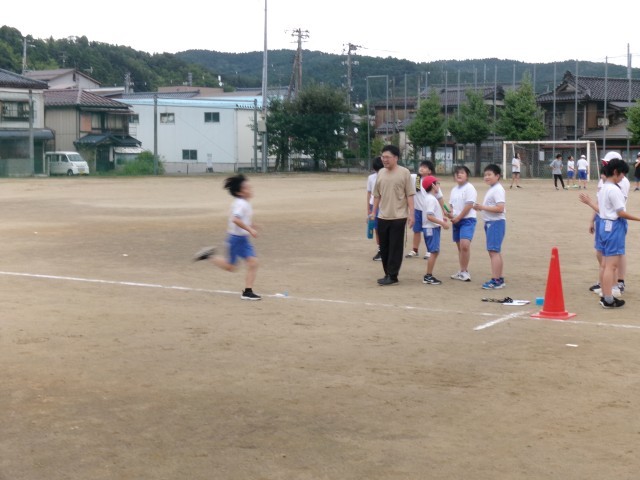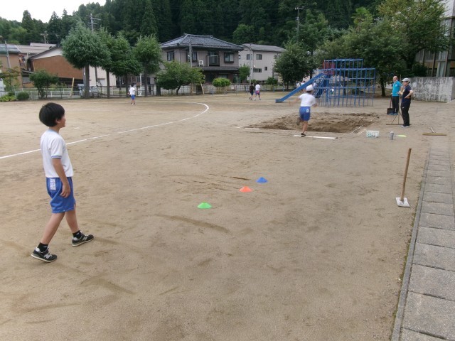 昨日から6年生の陸上練習が始まりました。子どもたちは、今月末の親善陸上大会の出場種目ごとに分かれて汗を流しています。一般50m、100m、800m、(1500mの出場者はいません)走り幅跳び、走り高跳び、そして最後に4×100mリレーの練習をします。これからほぼ毎日6校時に練習し、下校バスに遅れないように終了するという生活が続きます。種目を担当する職員から指導・助言を受けながら、自己の記録の更新を目指して頑張ってほしいです。