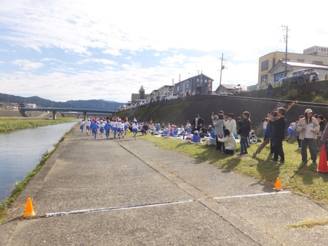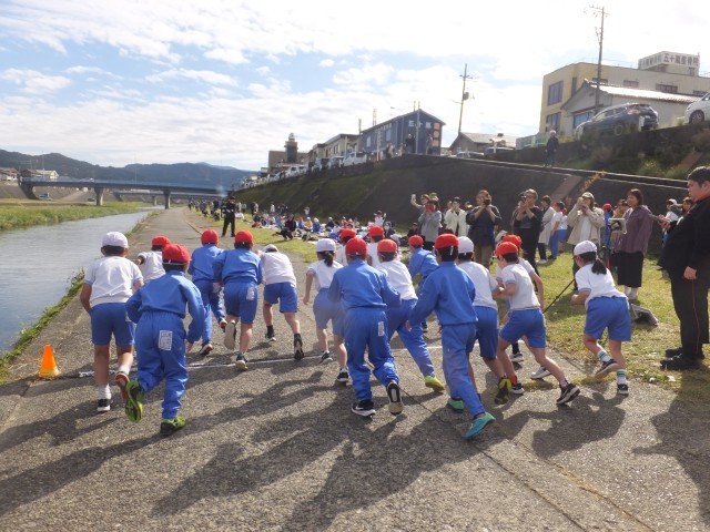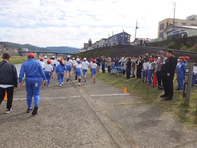 今年のマラソン記録会は、距離選択制です。1・2年生は800mと1000mから、3・4年生は1000mと1200mから、5・6年生は1200mと1500mから自分が走るコースを選びました。これまで子どもたちは、苦しい練習に耐えて、努力してきました。走るたびに自己記録を更新してきました。そして、苦しそうな表情で頑張る仲間に対し、大声で「頑張れ~」「もうちょっとだよ~」と応援してきました。これまでの取り組み方は大変素晴らしかったです。今日はその集大成です。お家の方、地域の方に格好いい姿を見せてください。