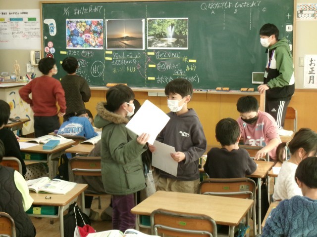 3年生は道徳「まわりを見つめて」の資料を使って「主として生命や自然・崇高なものとのかかわりについて」の学習をしていました。3枚の写真(1宝石、2夕日、3滝)を見て、その感想やすごいと思ったところを出し合い、「じゃあ、この中でなくてもいいのはどれ?」と尋ねることで、子どもたちの意見に違いが生まれ、話し合いがスタートです。子どもたちはどんな考えをもったのでしょうか。最後にどのように意見が収束したのでしょうか。