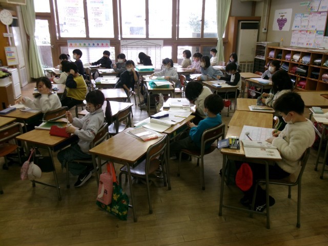 今日から3日間、23日(金)まで1年生は「学年閉鎖」となりました。昨日、1年生の保護者の皆様には、給食後のお迎えをお願いしました。急なお願いにご対応いただきありがとうございました。他の学年でも、インフルエンザや新型コロナウイルス感染症を予防するために、マスク、手洗い、うがい、換気の徹底を図っています。マスクについては、校内だけでなく、バス内でも付けるように指導しています。ご協力をお願いします。