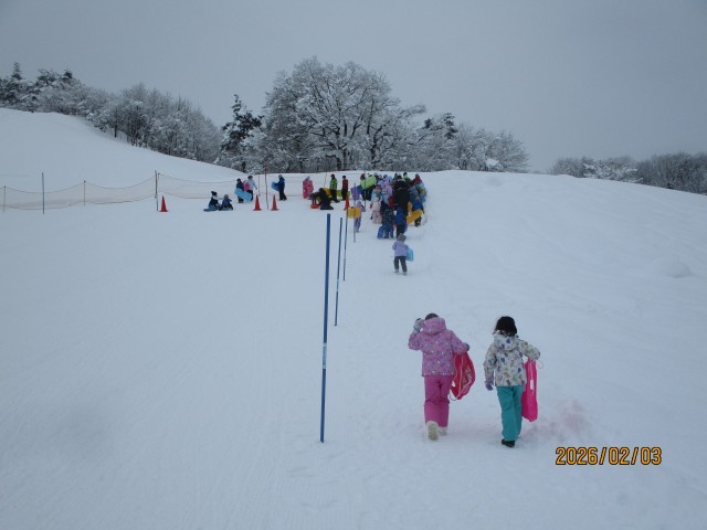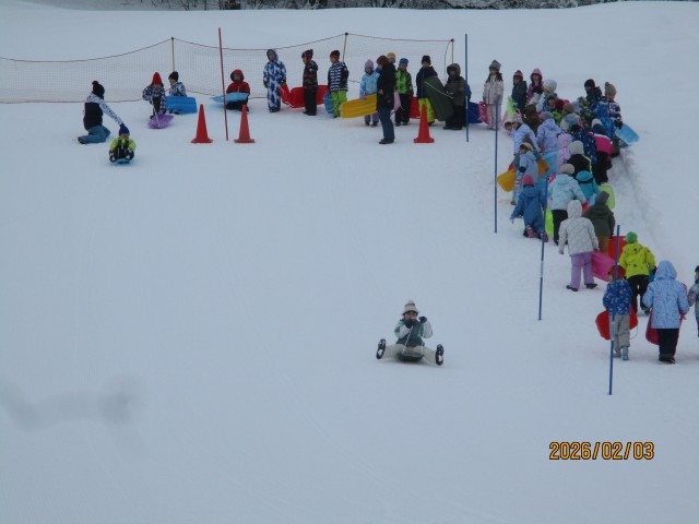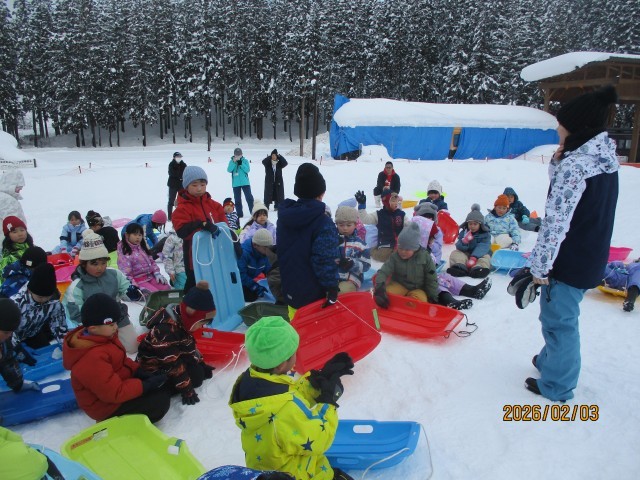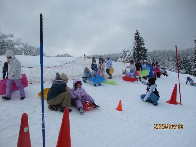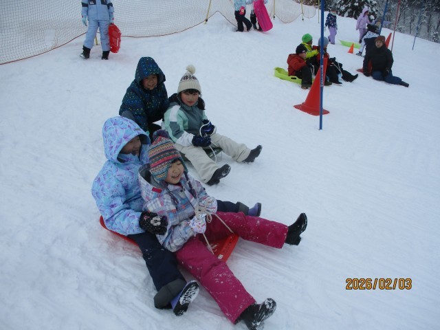 1・2年生が冬鳥越スキーガーデンで「そり遊び」を楽しんできました。大雪も止み、そり遊びには絶好の天気になりました。行きのバスでも元気。そり遊びは複数人乗りに挑戦したり、他のそりと競争したりして、遊びを工夫・進化させて楽しみました。子どもたちの中には遊び疲れて、帰りのバスで寝てしまう子もいました。保護者の皆様には、スノーウェアやそりなどの準備にご協力いただき、ありがとうございました。