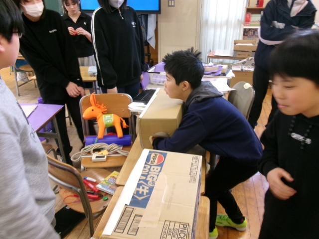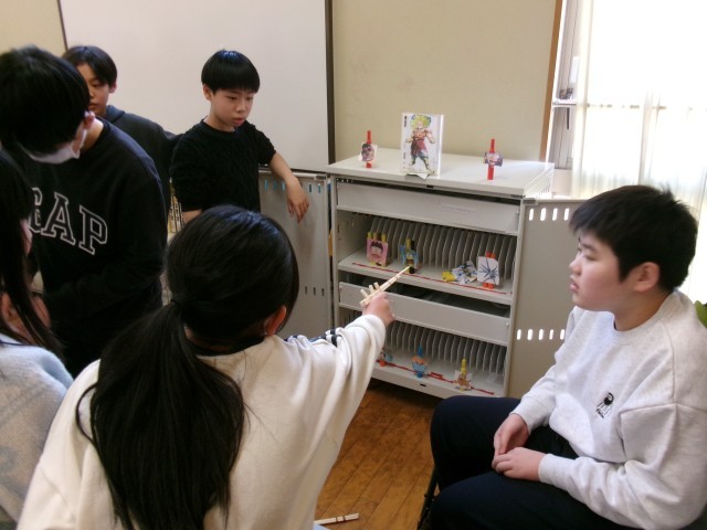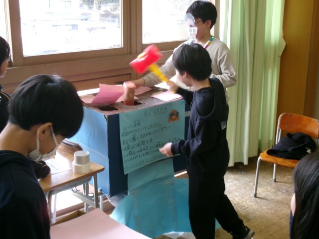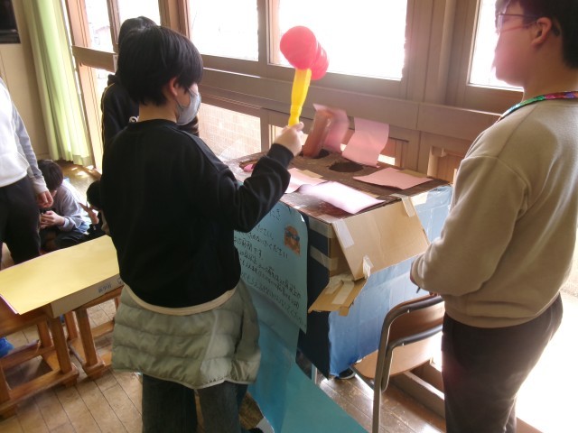 2月に行った児童会行事の「六年生を送る会」。1~5年生は、担当することを分担し、6年生のためにいろんなものを製作したり、出し物の練習を重ねたりしました。6年生は、そのお礼をしたいと考え、在校生が楽しめるお店を作ったのだそうです。今日は4年生と1年生を招待して、楽しいひとときを過ごしてもらいました。6年生との最後の思い出作りになりました。
