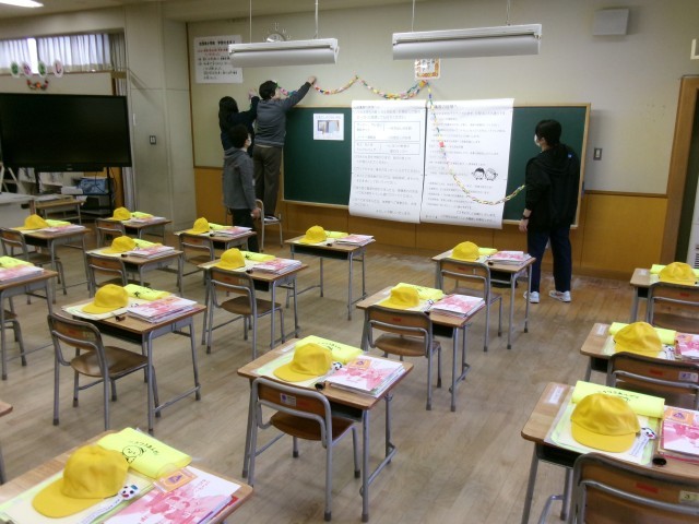 6年生が明日の「入学式」の準備をしてくれました。教室の配布物の確認、飾り付け、体育館のパイプ椅子並べ、来賓控え室の机いすの配置、玄関・廊下・各会場の清掃などをしてくれました。昨年度5年生の時に「六年生を送る会」を企画・運営したことで、「みんなの協力があるから、すべての活動がスムーズに行われる」ということを学んだ6年生です。今日は大変助かりました。ありがとう。これからも最高学年として主体的に取り組んでほしいです。