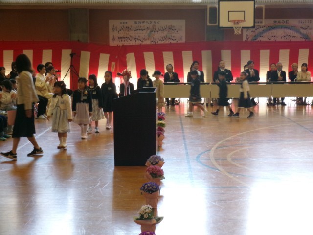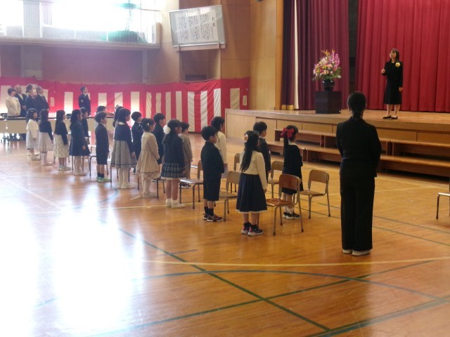 昨日の雨と寒さはどこへやら。今日はきれいな青空を背景にして、校庭の桜も満開となりました。まるで1年生の入学をお祝いしているようです。職員は昨日から念入りに入学式のリハーサルを行い、間違いのないように、そして左右に分かれて座っていらっしゃる保護者の皆様にお子さんの様子が見えるようにと準備してきました。待ちに待った19人の1年生。みんな元気よく返事をして起立することができました。素晴らしいですね。南小は優しくて面倒見のいい先生達とお兄さん、お姉さんばかりです。困ったことがあったら何でも相談してください。