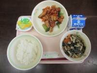 今日は食育の日でした。献立は、ごはん、いかのかりん揚げ、和風マカロニサラダ、も...