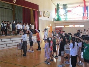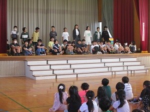 今日の児童朝会で、親善陸上大会(9/25開催)に参加する6年生の壮行会を行いました。大会に向けて、夏休み明けから一生懸命、練習に励んできた6年生。壮行会では、共に練習を頑張ってきた5年生が応援団となり、全校のみんなで6年生へエールを送りました。全校の熱い応援は、6年生の心にきっと響いたことと思います。6年生のみなさん、大会本番では、これまでの練習の成果を十分に発揮して、頑張ってください。みんなで応援しています!