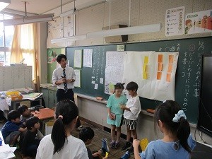 今日の2時間目に、校内授業研究として2年生の国語の授業を職員で参観し、研修を行いました。授業では、教材文「ビーバーの大工事」を読み、ビーバーの巣の作り方や巣の仕組みについてひみつを見付けて、文章にまとめる活動を行いました。子どもたちは、取り組む課題や取り組む方法を自分で選択し、友だちと意見を交流し合いながら、学びを深めていました。