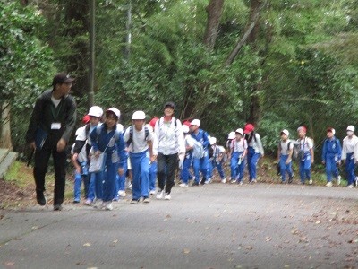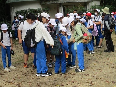 本日、晴天に恵まれ、予定通り、みどりっ子ウォークを実施することができました。フレンド班で加茂山公園まで歩き、ネイチャーゲームや公園内散策など、秋の加茂山の自然をたっぷりと楽しみました。6年生がリーダーシップを発揮し、温かい言葉をたくさん掛け、班のみんなをまとめてくれました。どの班も、笑顔いっぱいに、夢中になって活動を楽しんでいました。フレンド班の絆がまた一層深まったみどりっ子ウォークとなりました。