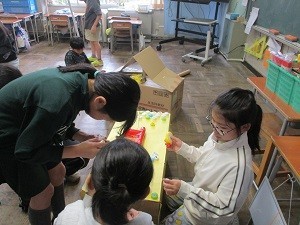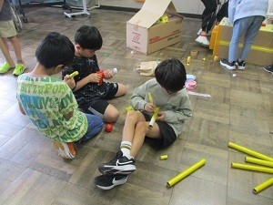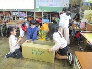 25日(土)の学習発表会まで2週間を切りました。どの学年も発表に向けての準備や練習に一生懸命に取り組んでいます。今日の2時間目には、3年生が発表で使う小道具作りをしていました。グループのみんなでアイデアを出し合いながら楽しそうに作っていました。どんな発表になるのか楽しみです。