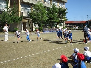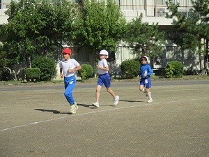天候に恵まれ、本日、延期となっていた持久走の記録測定を行うことができました。子どもたちは、10月からペース走旬間として、体育の時間を中心にペース走に取り組んできました。どの学年の子どもたちも、自分の目標に向かって最後まで力いっぱいに走っていました。みんな、すばらしい走り、頑張りでした。ぜひ、ご家庭でもお子さんの頑張りを誉めていただければと思います。(写真は1・2年生の様子です。1・2年生は、3分間走に取り組みました。元気いっぱいに走りきりました。)子どもたちの応援をしてくださった保護者の皆様、大変ありがとうございました。