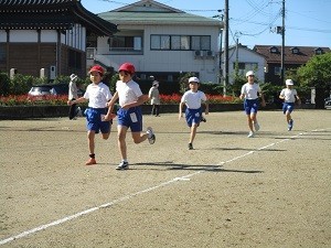 3・4年生は4分間走に取り組みました。自分の走るペースを落とさずに、最後まで走りきりました。