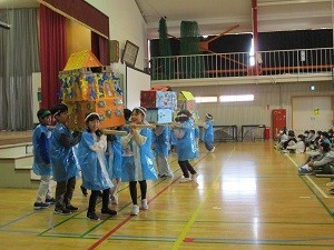 3年生は、「心をひとつに、わっしょい!!」(創作のお祭り)の発表をしました。