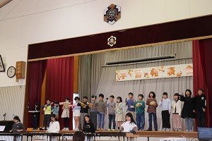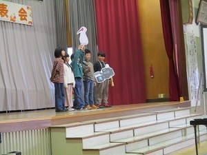 学習発表会 ④ 公開日 2025/10/28 更新日 2025/10/28 お知らせ 4年生は、「下条環境ぼうえい隊」(スライド発表、寸劇、クイズ)、合奏「スーパーカリフラジリスティック エクスピアリドーシャス」の発表をしました。