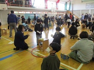 25日(土)の学習発表会後に、PTA文教部の皆様に計画・運営をしていただき、PTA講演会を行いました。講師にNPO法人星空ファクトリーの長野様をお迎えし、「科学のおもしろさを発見!下条小のみんなと楽しむ科学実験」と題して、科学実験教室をしていただきました。液体窒素実験やドライアイスロケット実験を親子で体験しました。わくわくドキドキがいっぱいの、科学の楽しさに触れることができた有意義な時間となりました。