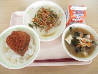 今日の給食は、いい歯の日(11/8)献立でした。献立は、ごはん、よく噛むふりかけ、いかのかりん揚げ、たくあんのおかか和え、切り干し大根の沢煮椀、牛乳でした。イカやたくあん、切り干し大根等、噛み応えのある食材がたくさん使われていました。味もおいしかったです。