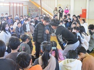 今朝は児童朝会がありました。体育委員会の計画による「ジャンケン列車」を全校で楽しみました。はじめに、フレンド班のメンバーでジャンケン列車をし、フレンド班内で列車をつくった後に、フレンド班対抗でのジャンケン列車をしました。ジャンケンを繰り返し、最後は、全校の子どもたちが一列につながり、長い長い列車ができました。そして、見事、ジャンケンチャンピオンになった児童に全校で温かい拍手を送りました。全校で一体感を感じられたとても楽しい時間となりました。体育委員会のみなさん、ありがとうございました。