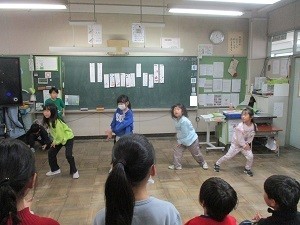 昨日(22日)、1年生が2学期のお楽しみ会をしていました。「フルーツバスケット」などのゲームをみんなで楽しんだり、ダンスや楽器の演奏、手品などの出し物を披露し合ったりと、盛りだくさんの内容でとても盛り上がっている様子でした。笑顔いっぱいの楽しい時間となりました。