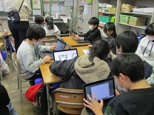 3年生が係活動のポスター作りをしていました。タブレットを巧みに操作し、写真を貼り付けたり、当番表を作成したり、イラストを加えたりと、すてきなポスターに仕上げていました。子どもたちの操作スキルの高さに感心しました。