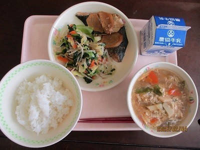 今日の献立は、ごはん、さばのピリうま煮、なめたけ和え、親子汁、牛乳でした。さばのピリうま煮は、煮汁がよく染みこんでおり、ごはんがすすみました。親子汁には、ふわふわの卵と鶏肉が入っており、とってもおいしかったです。
