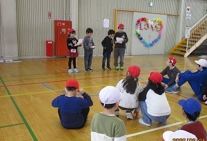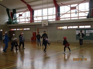 「6年生ありがとう週間」の活動として、今日の学級裁量の時間に2年生と6年生の交流会を行いました。交流会の企画・運営を2年生が担当し、体育館で「ドッジボール」と「こおりおに」を楽しみました。ドッジボールでは、6年生が2年生にボールを譲ってあげる微笑ましい姿が見られました。こおりおにでは、2年生4人、6年生4人の計8人がおにとなり、2年生も6年生も元気いっぱいに走り、大いに盛り上がっていました。6年生に楽しんでもらえて、2年生はとても嬉しそうでした。