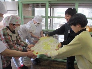 給食を心を込めて作ってくださっている調理員さんと、栄養や楽しいメニューを考えて献立を作ってくだっさている栄養士さんへ、各クラスごとに作成した感謝のメッセージを届けに行きました。調理員さん、栄養士さん、いつもおいしい給食をありがとうございます。
