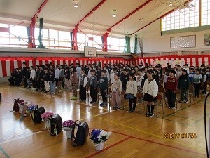 本日、多くのご来賓の皆様よりご臨席いただき、令和7年度の卒業式が行われました。やわらかい春の陽の光も、卒業生の門出をお祝いしてくれているようでした。中学校の制服姿の卒業生は、凛としており大変立派な姿でした。卒業証書を受け取る姿や「門出の言葉」での呼びかけの姿は堂々としており、在校生が憧れるすばらしい姿でした。卒業合唱「絆」も、心に響くすてきなハーモニーでした。在校生の子どもたちも、「門出の言葉」や歌声に心を込めて、卒業生への感謝とお祝いの気持ちを伝えました。感動いっぱいの最高の卒業式でした。明るい未来へと羽ばたく卒業生のみなさん、下条小学校で学んだ誇りを胸に中学校でもがんばってください。いつまでも応援しています。
