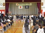 桜満開の春の暖かい陽気の中、令和8年度の入学式を行いました。今年度の1年生は19名です。1年生が入学してくるのを、2年~6年生の子どもたちも教職員もとても心待ちにしていました。ピカピカのランドセルを背負い、ニコニコの笑顔で校門をくぐる1年生の姿がとても輝いていました。