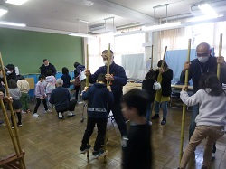 今年も下条コミュニティセンターの全面協力をいただき、16名の地域の方から昔遊びの活動に来ていただくことができました。「こま」「竹馬」「けん玉」「お手玉」「おはじき」「あやとり」の計6か所に分かれて、4,5人グループでローテーションしながら昔遊びの楽しみ方を伝授していただきました。
