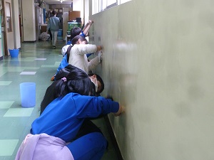 年度末大清掃初日 3/6(水) 公開日 2024/03/06 更新日 2024/03/06 お知らせ 3/6(水)と3/8(木)は年度末大清掃です。 今日は、たてわりの清掃班で3学期担当した場所を丁寧に清掃しました。 2日目は、学級全員が自教室の大掃除を行います。 普段の清掃では中々行き届かなかった部分を雑巾が真っ黒になるまで頑張ってきれいにしていきます。
