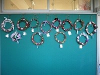 生活科の学習で、あさがおのつるを利用してクリスマスリース作りをしていた1年生。...