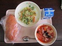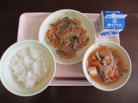 今日の献立は、ごはん、ごぼうときのこのチャプチェ、ごまキムチ豚汁、牛乳でした。...