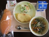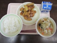 今日の献立は、ごはん、シイラとじゃがいものレモン和え、厚揚げみそ汁、牛乳でした...