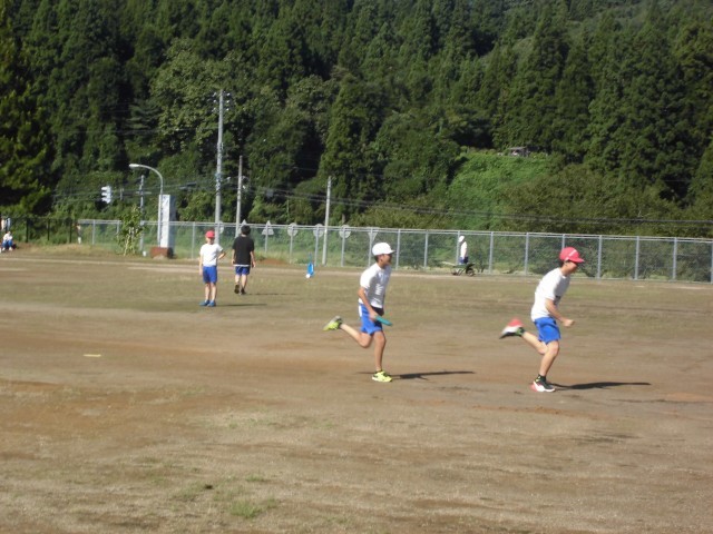 写真は、男子400mリレーの練習風景です。中学校のグラウンドをお借りして練習をしました。
