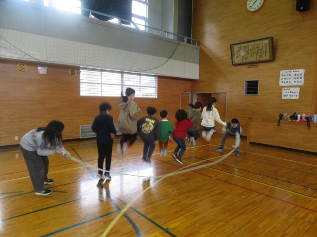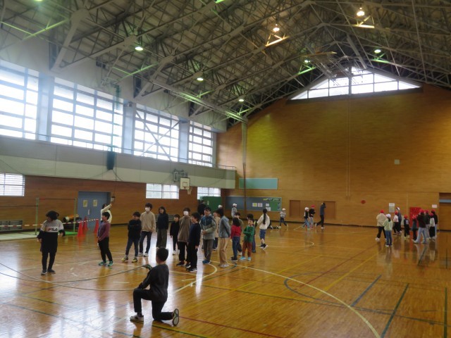 今回のエンジョイタイムは、みどりの仲間班の6年生が担当でした。午後1時35分から、体育館で2つずつの班が一緒になって、6年生から提案された活動を楽しそうに行っていました。班の活動を通して、一人一人の絆がさらに深まりました。