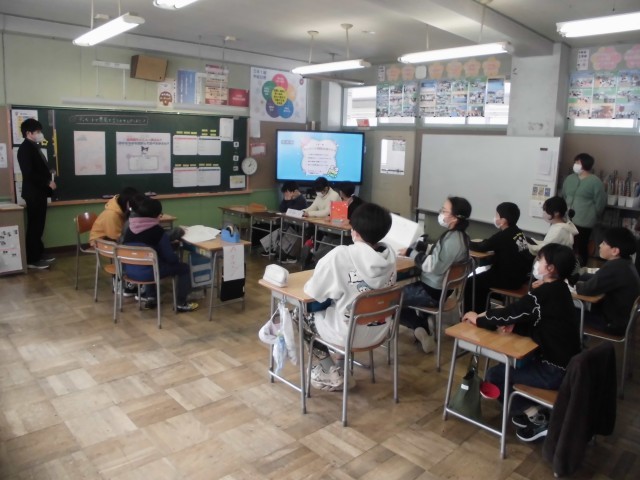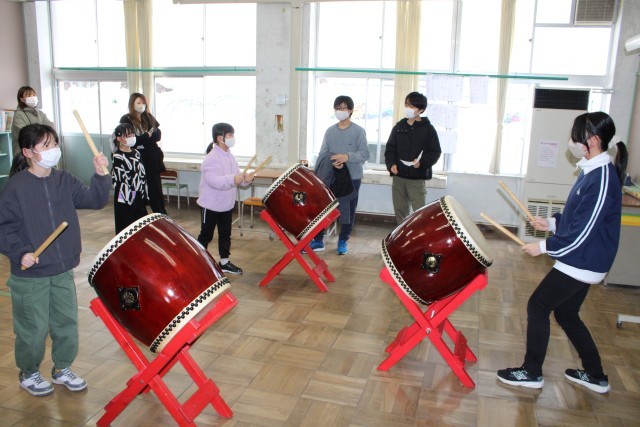 17日(火)に、今年度最後の学習参観・学級懇談会がありました。時折、陽ざしが校舎を照らす中、それぞれの教室で授業が行われました。1・2・3・4年生は、まず1年生教室に集合し、6年生から太鼓にかかわってのクイズ等を交えた話を聞いて、太鼓について学びました。そして、その後、太鼓が置いてある教室に移動して、6年生から太鼓のたたき方を教わりながら実際にたたいてみました。また、5年生教室では、4つのグループに分かれて、出されたお題ごとにディベートを行いました。立場をグループごとに決め、2グループごとに話し合いを行い、他の2グループから判定してもらうというやり方でした。そして、授業参観後、次年度にかかわる説明や「睡眠時間とメディアの利用について」の講話があり、その後、各学級で懇談会が行われました。