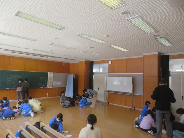 「6年生を送る会」に向けた準備が一つ一つ進められています。今日は、昼休みに視聴覚室に1~5年生が集まり、自分たちの「みどりの仲間」班の6年生に向けてメッセージを書きました。活動の初めに、どんなことを、そしてどのように書くのかの説明がありました。そして、いつものように班ごとに丸くなって班のメンバーとかかわりながら活動しました。