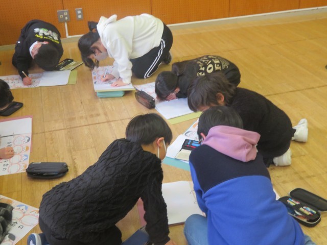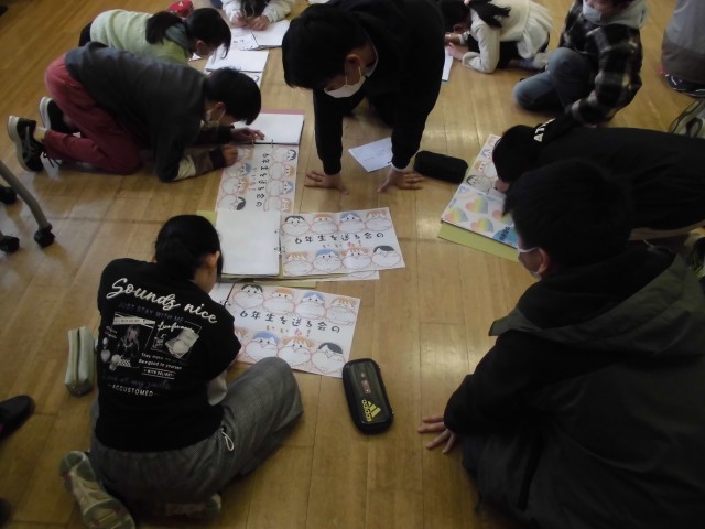 3月3日(火)の昼休みに、全校で視聴覚室に集まり「6年生を送る会の『いいね!』交換会」をしました。それぞれ、「みどりの仲間」班ごとに分かれ、その中で『いいね!』交換をし合いました。交換するためには、交換する相手の『いいね!』を思い出したり、確認したり、探したり等しなければなりません。子どもたちは、交換する相手のことをよく考えながら、一人一人が集中して取り組みました。