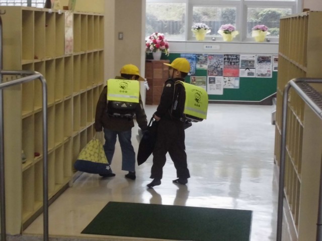 8日(水)の入学式で七谷小学校に仲間入りした1年生、バスからピロティーにおり、校舎脇を通って児童玄関に。毎朝、上級生を見習い、「おはようございます!」の挨拶をして登校しています。児童玄関では、自分の下駄箱を間違えることなく、外履きと内履の履き替えをし、教室に向かいます。また、昼休みには、屋外で楽しそうに遊ぶ姿も見られます。
