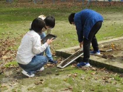 5・6年生が理科の学習で「水には土にしみこんだり、土を流したりする力があるか?」について、水の量を増やしたり、傾きを変えたりして実験をしていました。「削れた土が押し流され、下の方にたまっている。」「水の量が増えるとたくさん削れるね。」など、よい気付きをたくさんしていました。グループに分かれ、真剣に実験に取り組む姿は、さすが高学年だなと感じました。