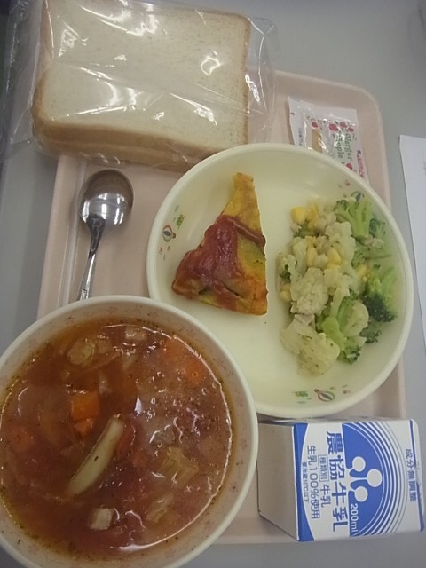 2/5(木)食パンりんごジャムミネストローネパンプキンオムレツ花野菜のペペロンソ...