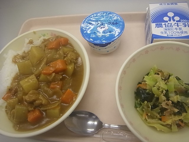 2/6(金)中学生3年生希望献立チキンカレーライス海藻サラダ牛乳(安田)ヨーグル...