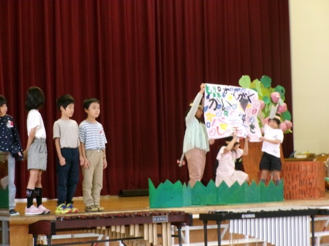 1・2年生は、国語で勉強した物語を音読しながら、動作化しながら、とても楽しそうに発表しました。
