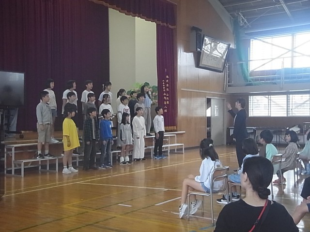 4年生は、一か月全校で歌いこんだ歌を、前奏・間奏の合間に、これまでの生活のコメント・感想などの発表を盛りこみながら披露してくれました。