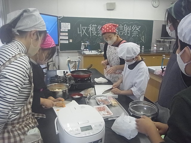 5年生 学年PTA行事(総合学習)「収穫祭 おにぎり・豚汁作り」、歯科衛生講話
