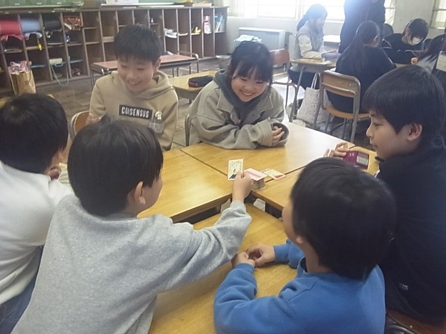3枚目…3年生は、「百人一首」絵札を使い「ぼうずめくり」