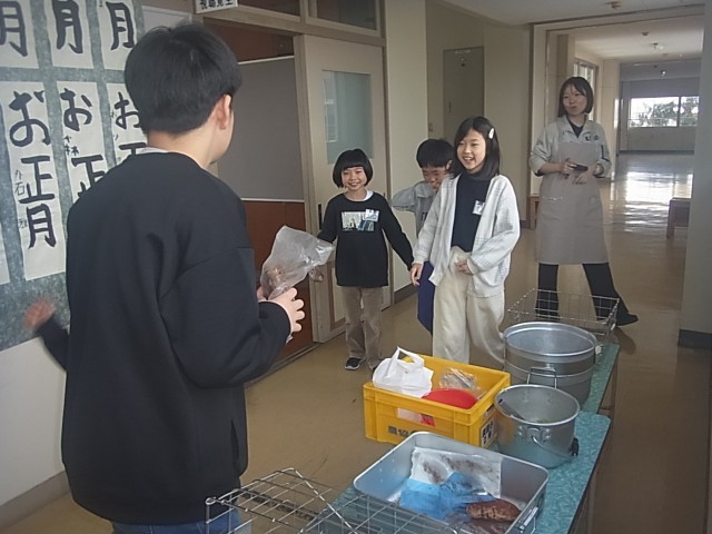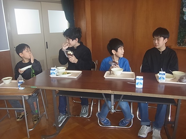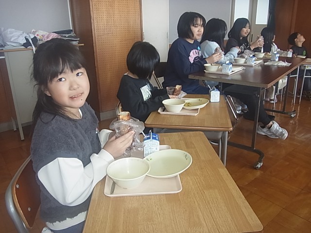 早く食べ終わった6年生が、2年生の配膳台の残食具合を偵察に行くと…ナント「ココア揚げパン」が残っていた!(欠席がいたので)
