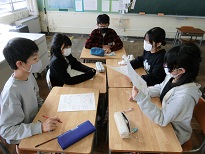 6年生は、前回は国語、今回は算数の「にいがた学びチャレンジ」をしていました。問題を解いて、これから話し合うところです。