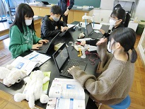 6年生は、豆電球と発光ダイオードの違いを比べていました。電流の大きさや光っている時間を比べました。