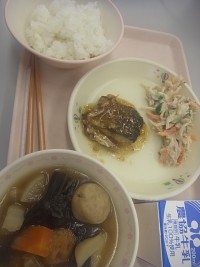 1/23(金)冬の味覚カレーライス大豆とチーズのサラダ牛乳でした。昨日が全国的な...