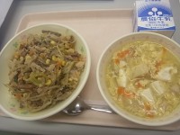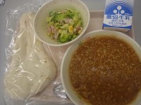 2/24(火)中学3年生希望献立ソフトめん麻婆あん鶏肉と大豆の甘辛わかめのサラダ...